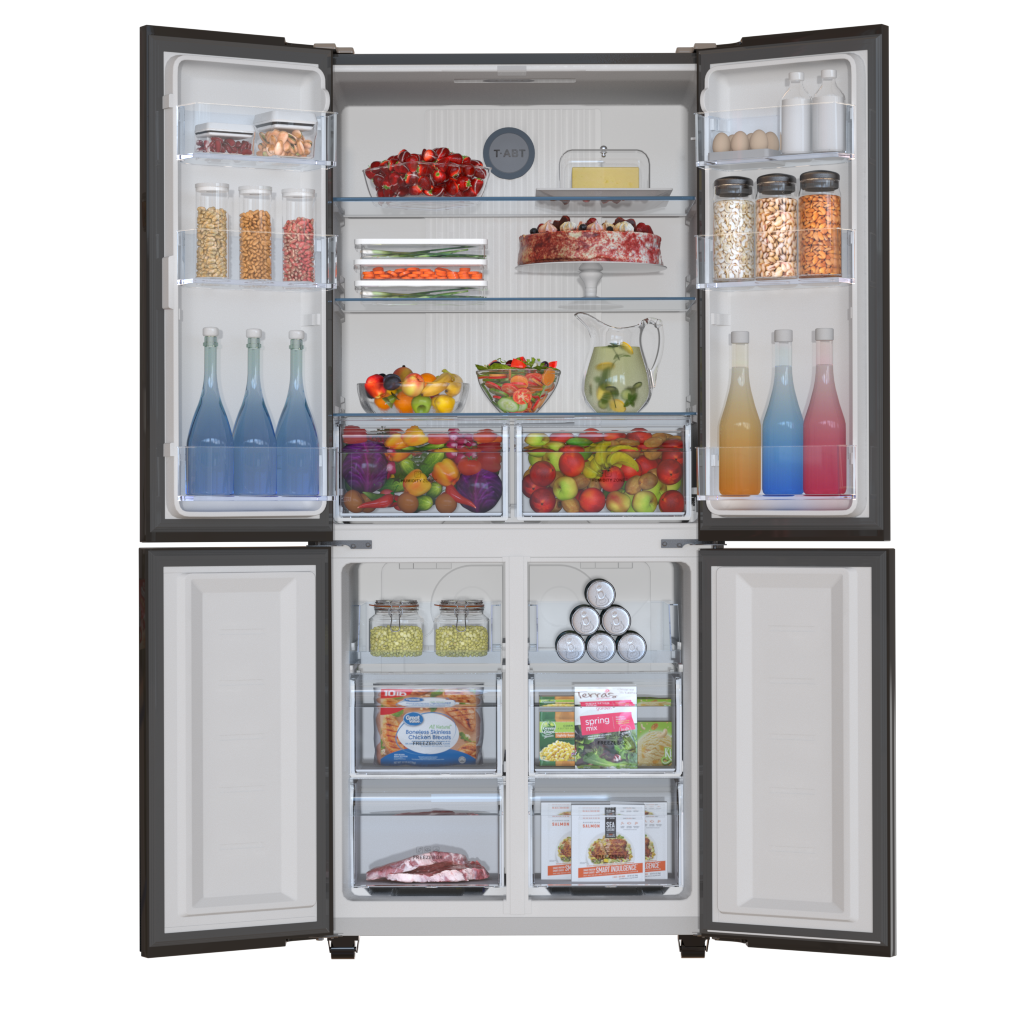 מקרר ה־4 דלתות של Haier בעיצוב זכוכית שחורה מציע שילוב מרשים של מראה יוקרתי, טכנולוגיות קירור מתקדמות ונפח אחסון גדול המתאים למשפחות. הוא מספק קירור אחיד, פעולה שקטה ופתרונות אחסון חכמים, כך שכל מוצרי המזון נשמרים בתנאים מיטביים לאורך זמן — וכל זה בעיצוב מודרני שמשדרג כל מטבח.